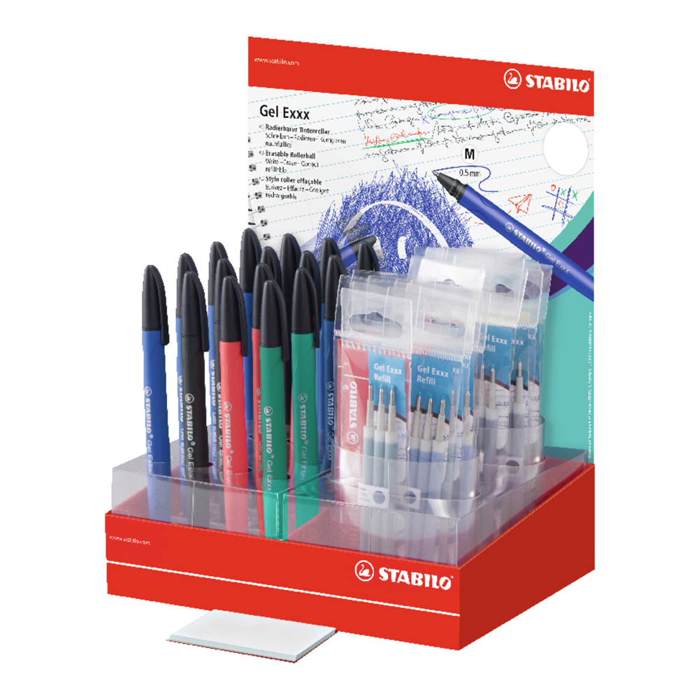 Piši-briši gel roler Stabilo Gel Exxx displej 16 rolera + 60 refila